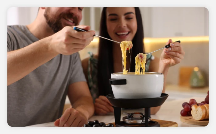 Indulge in a decadent night to remember. Choose your favorite cheese or chocolate flavors, dip your favorite foods and create a romantic and delicious evening at home.