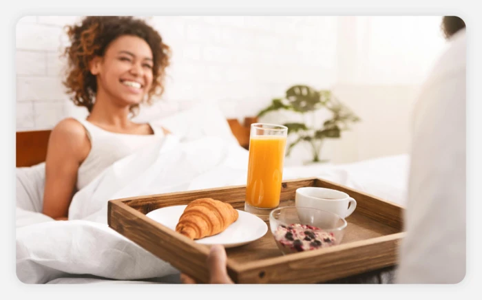 Breakfast in bed doesn’t have to be for a special occasion — you can make it a surprise gesture with ideas from Wolfermans . Whip up some gourmet waffles with fresh orange juice for a perfect start to the day.