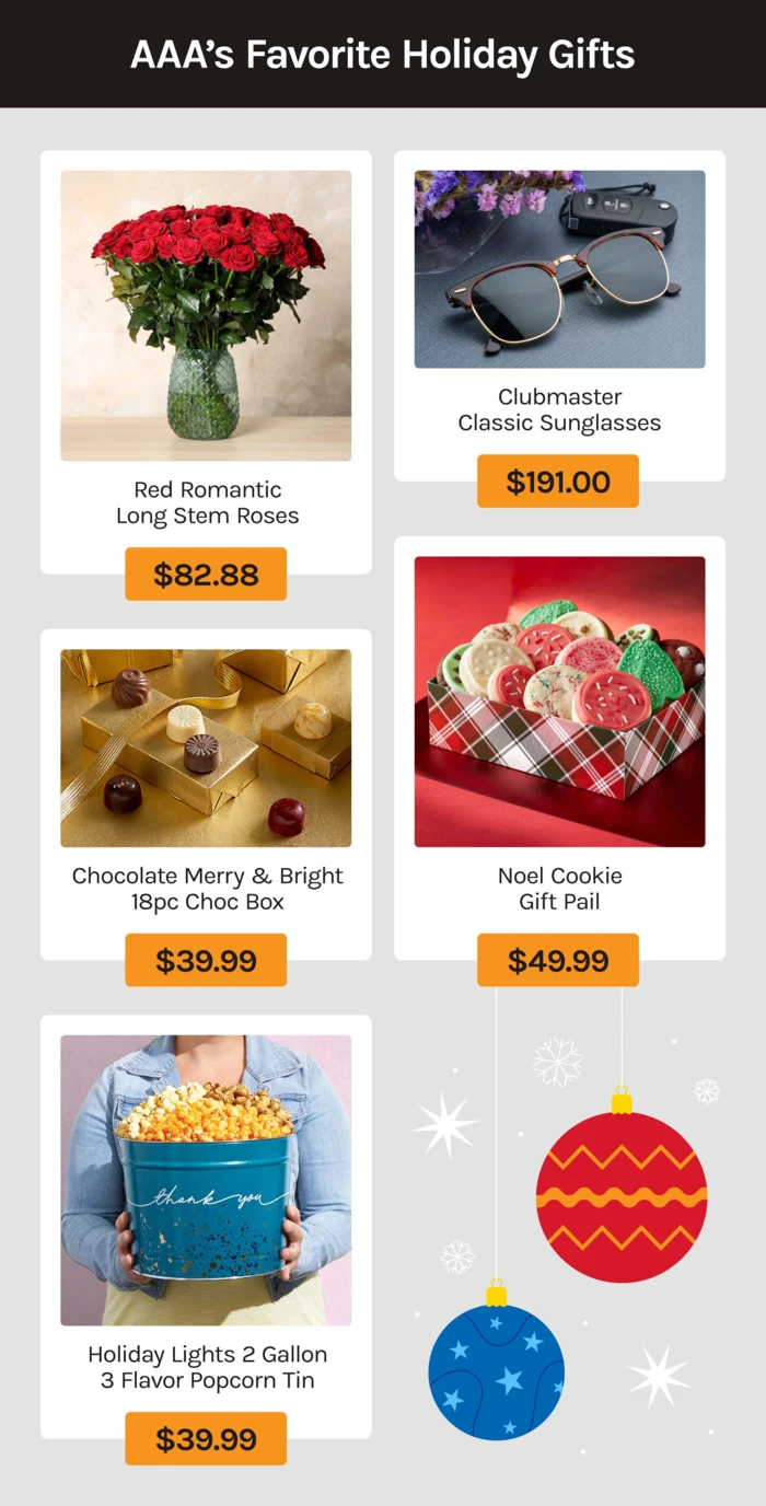 AAA members get discounts on all the gifts listed above, making it easier to give without stretching your budget. Join AAA today to take advantage of these deals. Enjoy peace of mind on your holiday travels with roadside assistance for any unexpected issues while you wrap up your holiday giving with less stress and more joy.